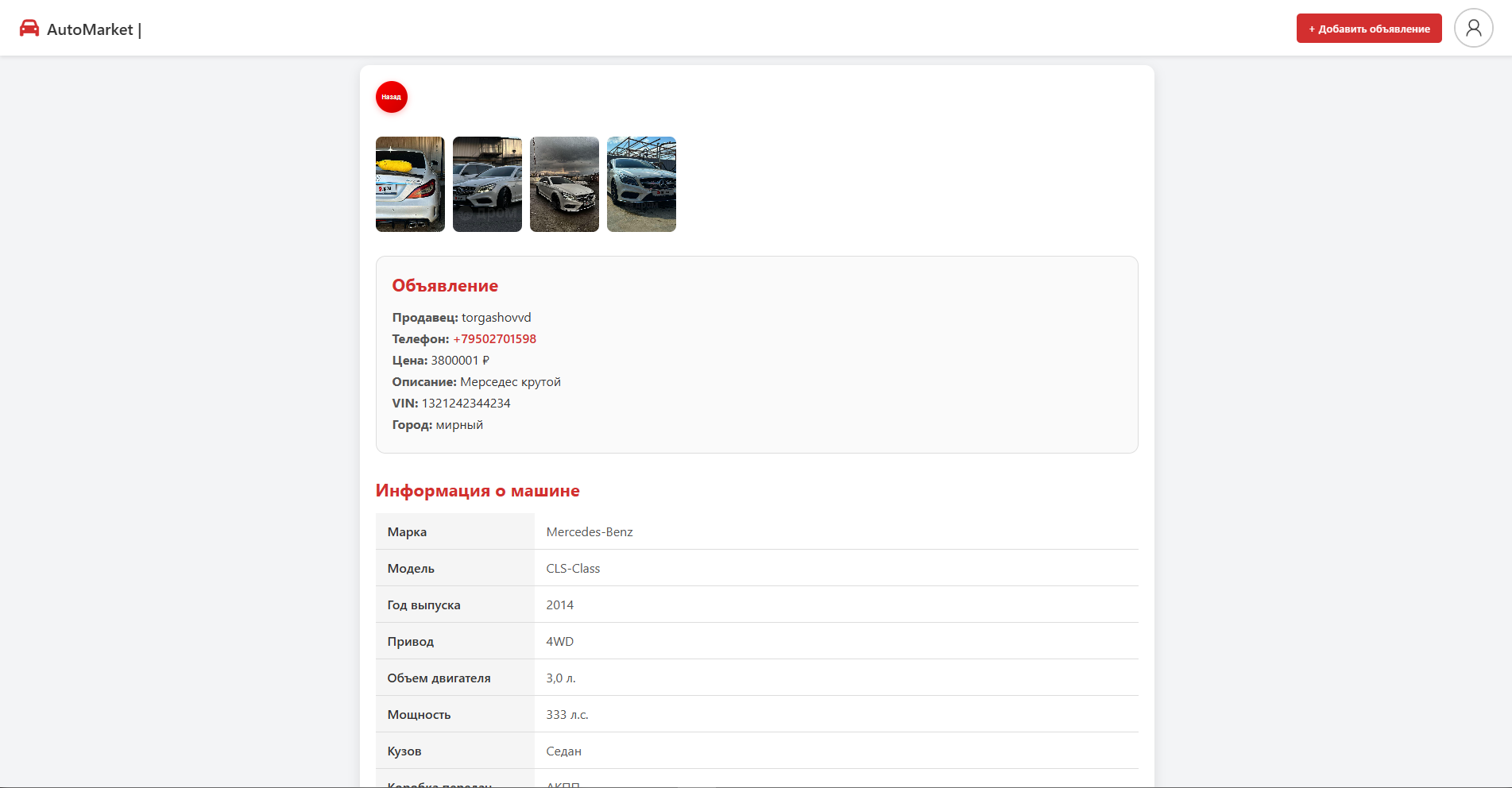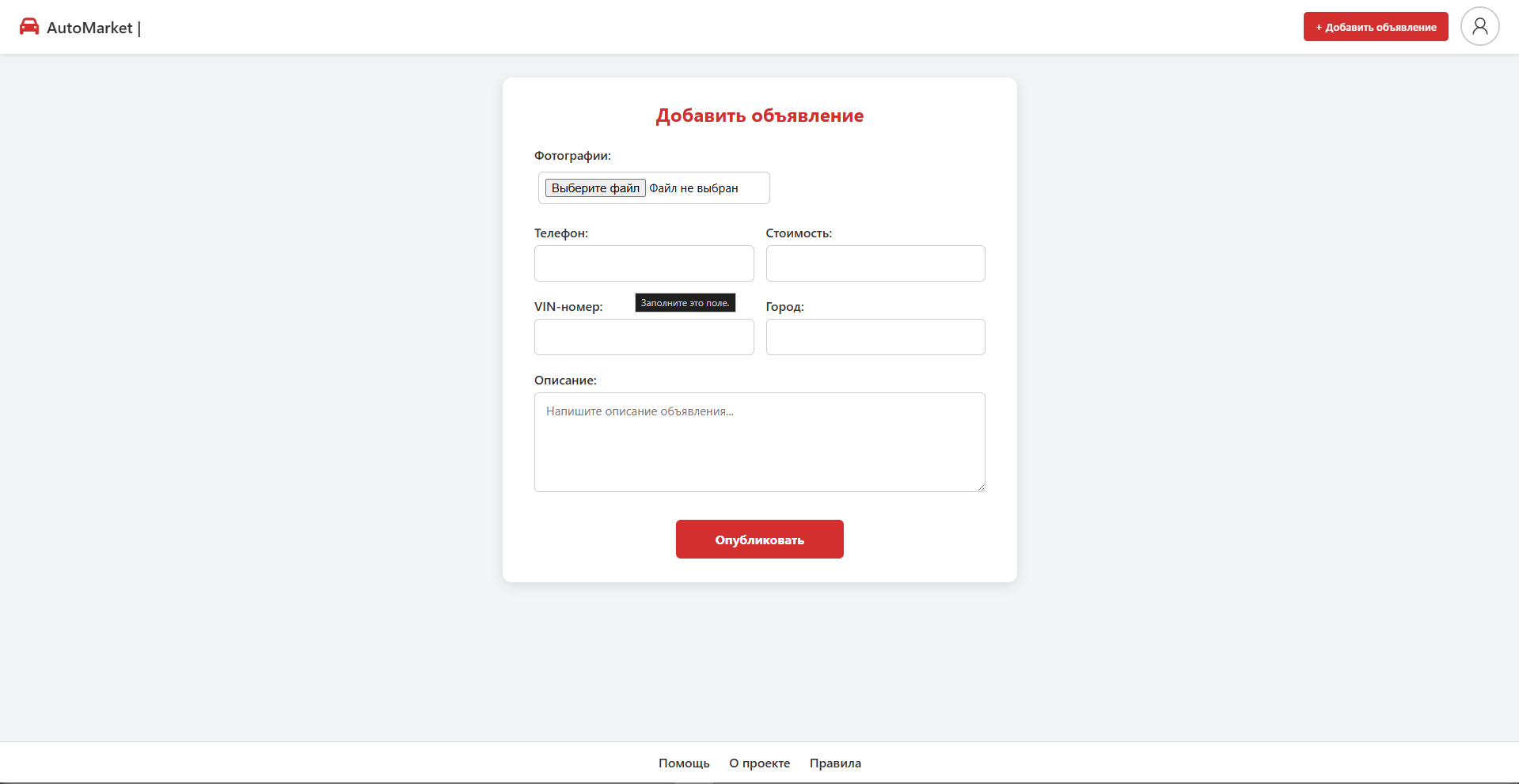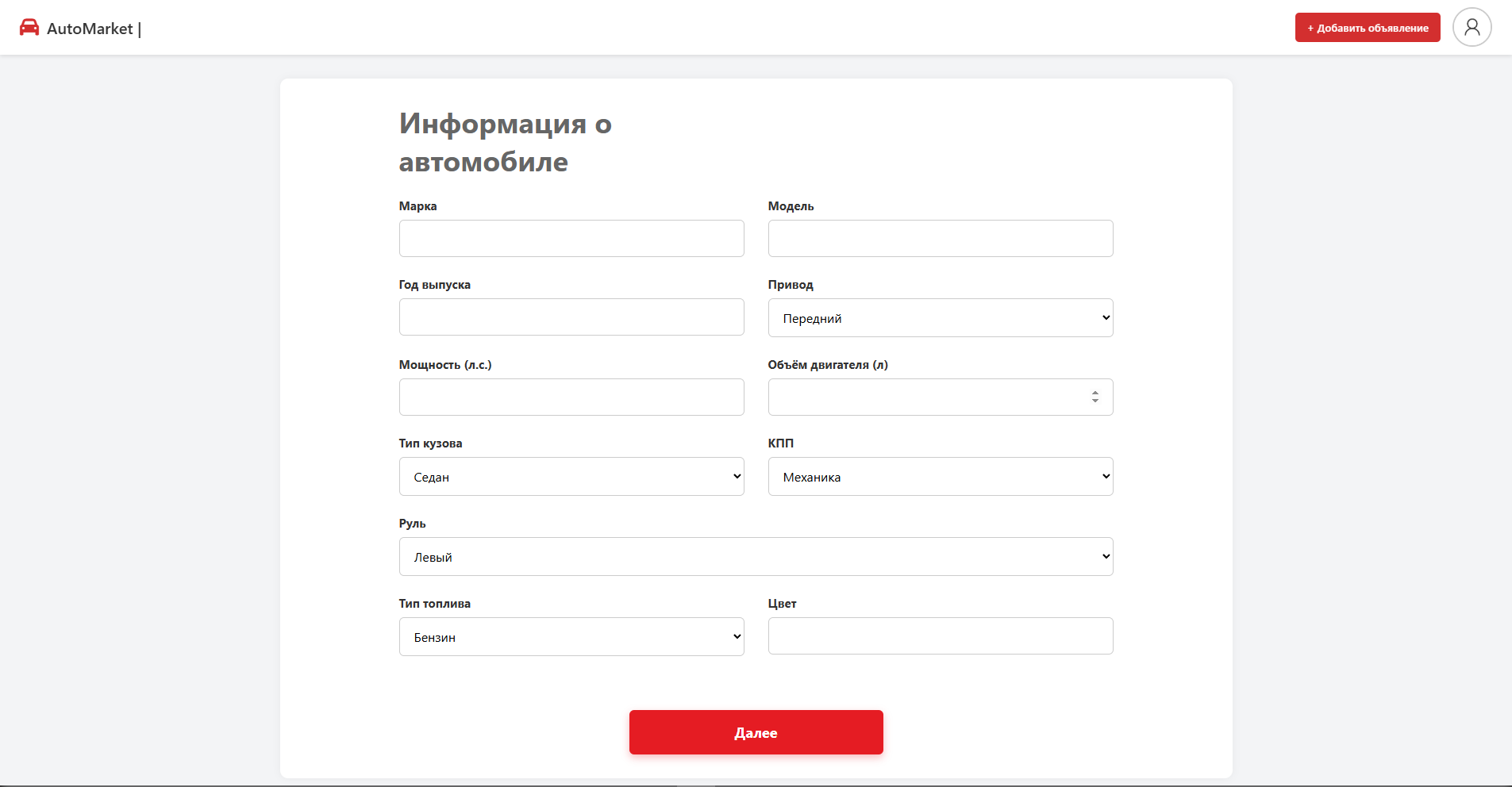Основная цель проекта — создать удобный и понятный сервис для публикации и поиска объявлений, где пользователь может быстро разместить информацию о продаже автомобиля и так же легко найти подходящий вариант.