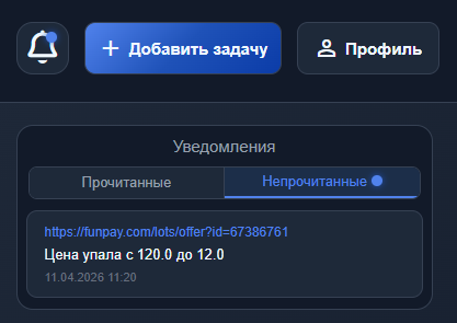 Проект реализует полноценную систему работы с пользовательскими задачами: после авторизации пользователь может добавлять ссылки для отслеживания, управлять ими (ставить на паузу, удалять), а также отслеживать их статус через личный кабинет.